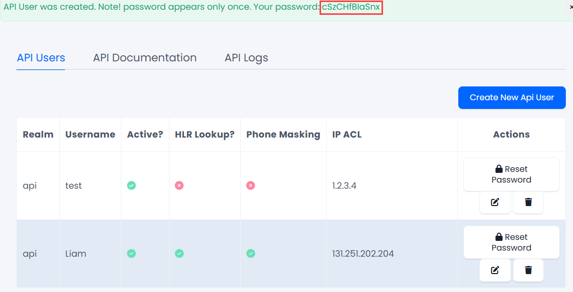 Username: Authorized individuals will use this username to authenticate and access the Dialer API. You will be able to generate a password in the next step