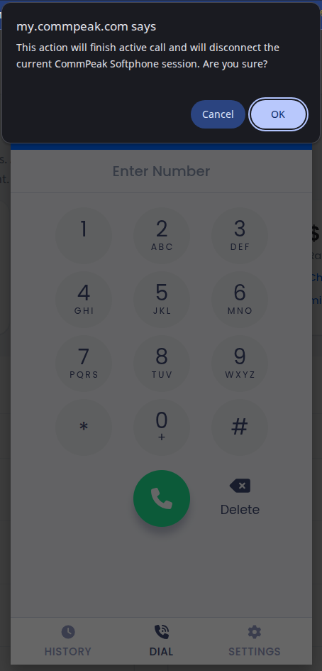 - To avoid interruptions, finish your conversation before exiting. Regardless, a confirmation prompt will appear when you try to close the Softphone session.