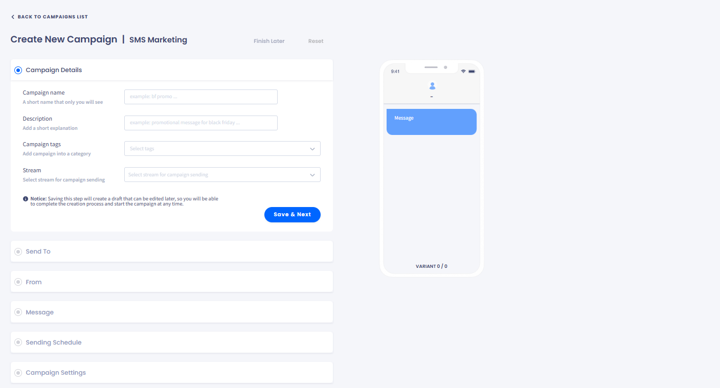 This article will walk you through creating an SMS campaign step by step.