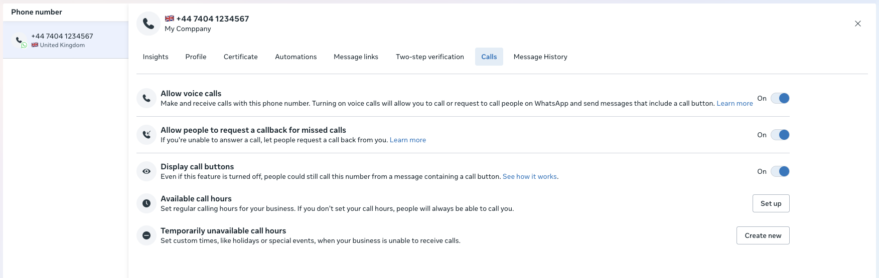 - Enable Calling features on your business phone number