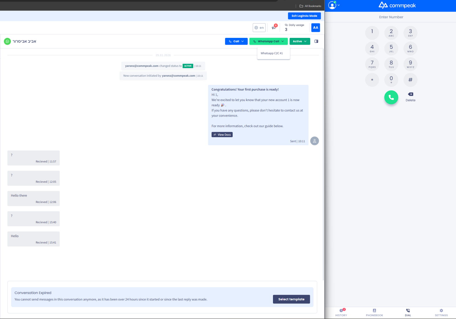 Also, this agent must be assigned with an extension to be able to make WhatsApp Business or VoIP calls.