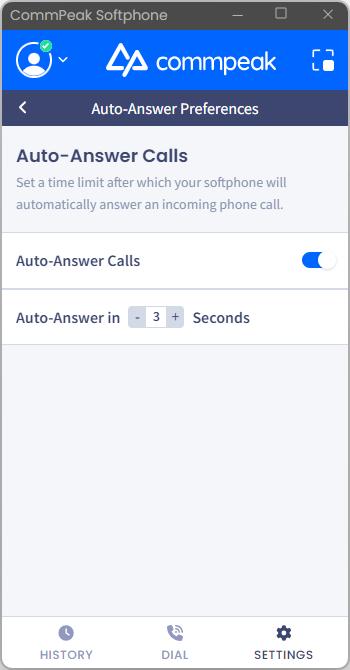 The feature allows agents to set a time limit, after which their softphone device will automatically answer an incoming phone call.