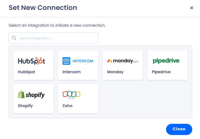 Integrations page with the Screenshot of the Set New Connection button highlighted