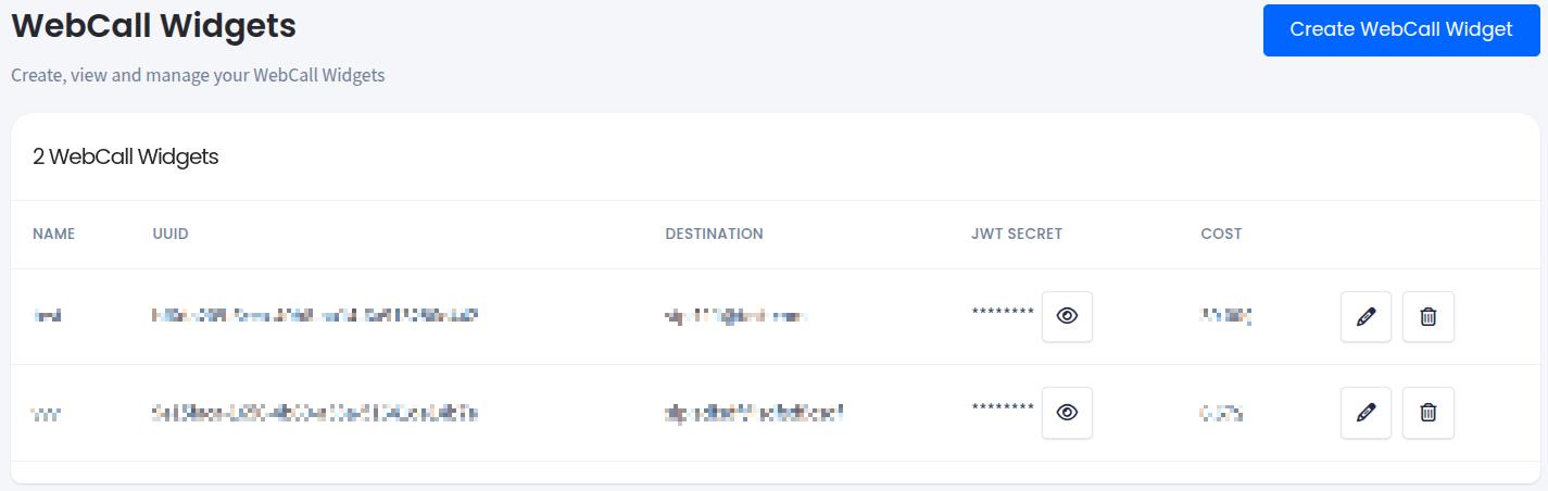 You can begin by configuring your widget on the WebCall Widgets page, found within the VoIP Services section. Use the "Create WebCall Widget" button to setup your first widget.